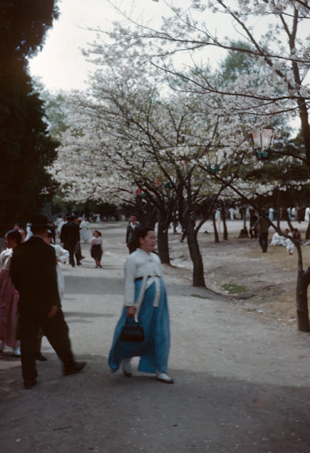 This set of photos from Korea that Arnold took in 1946 is in color. Cherries are typically in bloom in Seoul at the end of March and start of April.