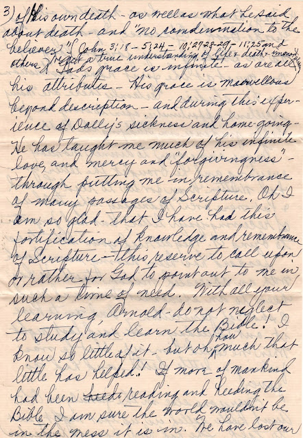 Hazel writes Arnold with belated birthday wishes. She talks of her religion and its comfort in coping with Dolly's death. Leonard has an abscessed tooth. Bill plans a business trip to Chicago and the East Coast. Bill's sister Belle has high blood pressure and health issues.